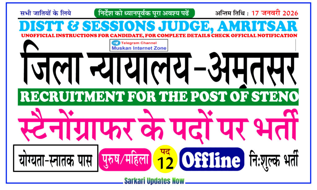 | District and Sessions Judge, Amritsar (Punjab) Amritsar Court Stenographer Recruitment 2026 Short Details of Advertisement Notification |