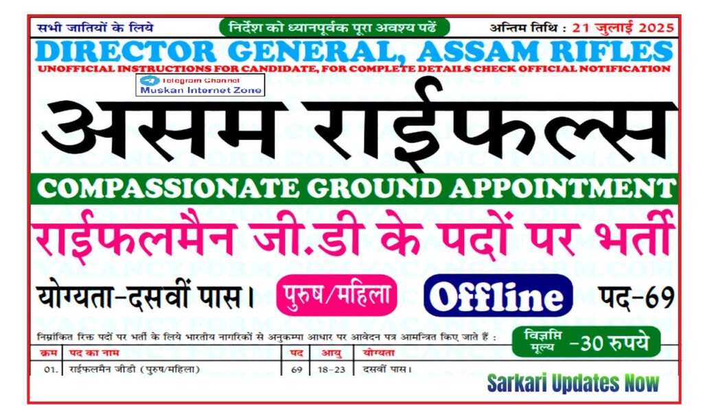 9.आवेदन करने से पूर्व असम राईफल्स की वेबसाईट पर प्रकाशित नोटिस का अवलोकन अवश्य कर लेवें तथा उसी के आधार पर आवेदन करें। यह जानकारी मात्र आवेदक के सूचनार्थ है।