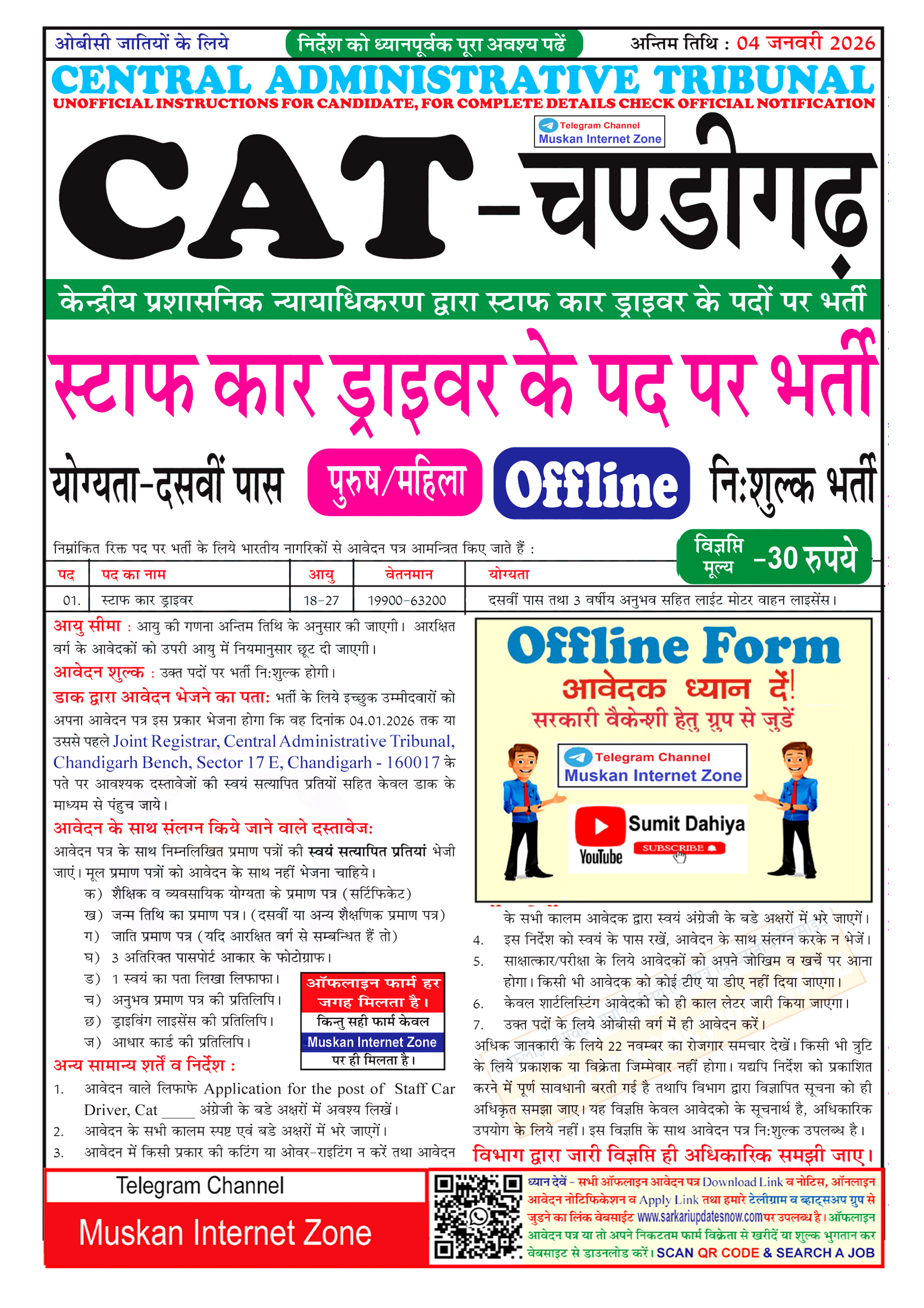 CAT Chandigarh Vacancy 2025 : Central Administrative Tribunal, Chandigarh issued the latest notification for the post of Staff Car Driver. Interested Candidate can apply through Sending/ Submitting their application form via By Post or By Hand. All details related to CAT Chandigarh Vacancy 2025 are given below in this post.
