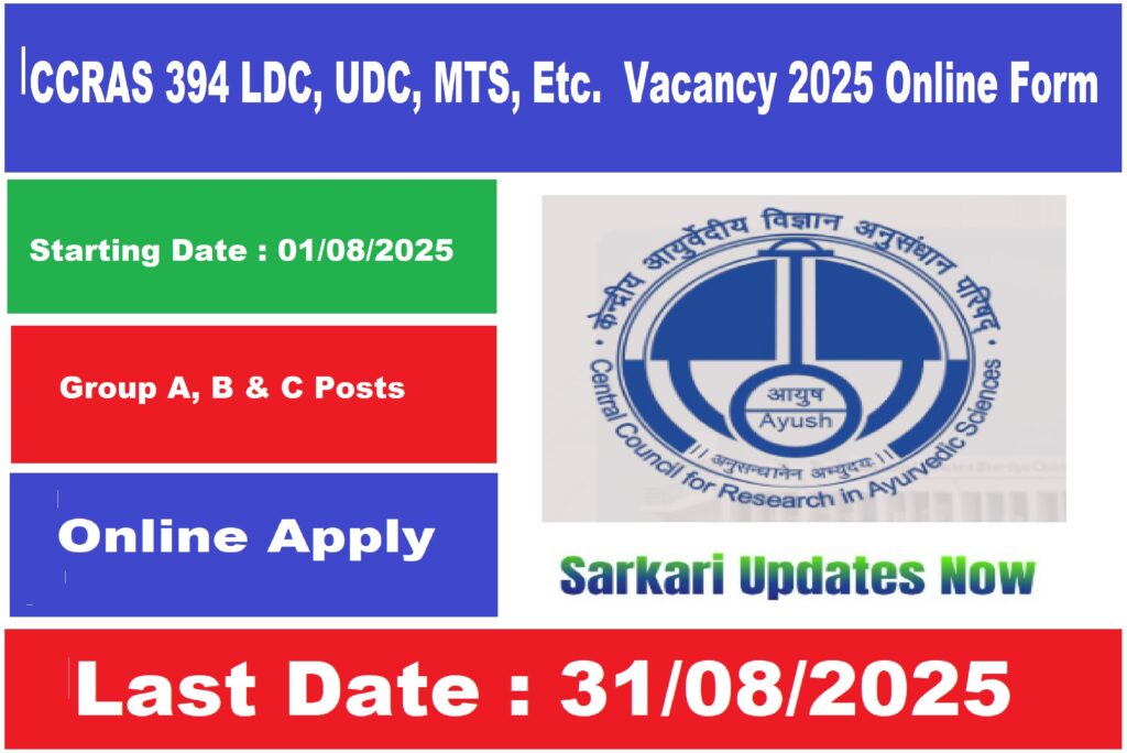 | Central Council for Research in Ayurvedic Sciences (CCRAS) Various Group A, B & C Posts Recruitment 2025 Advt No. : 04/2025 Short Details Of Notification |