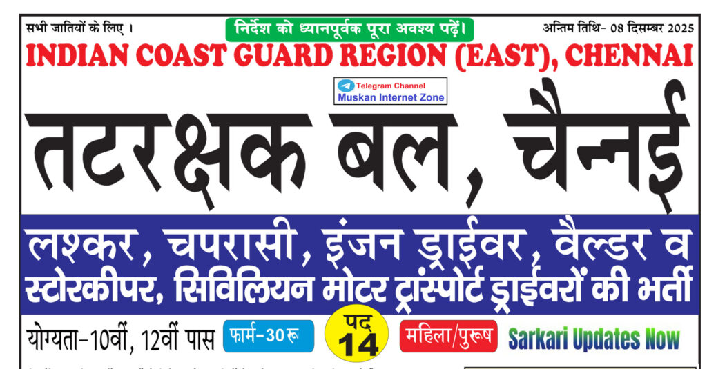 | HQ Indian Coast Guard Region (East), Chennai (Tamil Nadu) Coast Guard East HQ Civilian Recruitment 2025 Short Details of Advertisement Notification |