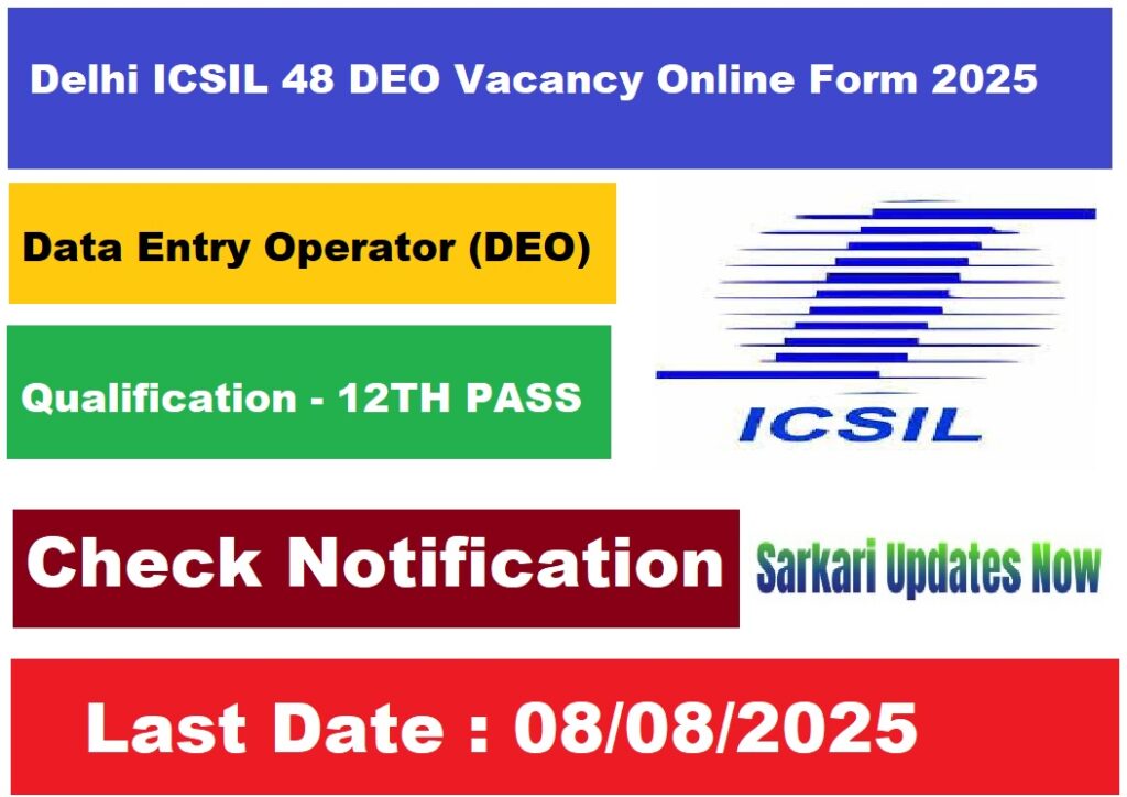 Delhi ICSIL Data Entry Operator (DEO) Recruitment 2025 : Here You Can Get All The Current And Upcoming Information Related To Delhi ICSIL DEO Recruitment 2025. Like Recruitment News, Delhi ICSIL DEO Recruitment 2025 Total Posts, Important Dates, Application Fees, Qualification, Age Limit, Delhi ICSIL DEO Recruitment 2025 Selection Process, Salary, Interview Date, Merit List, Delhi ICSIL DEO Recruitment 2025 Result and More.
