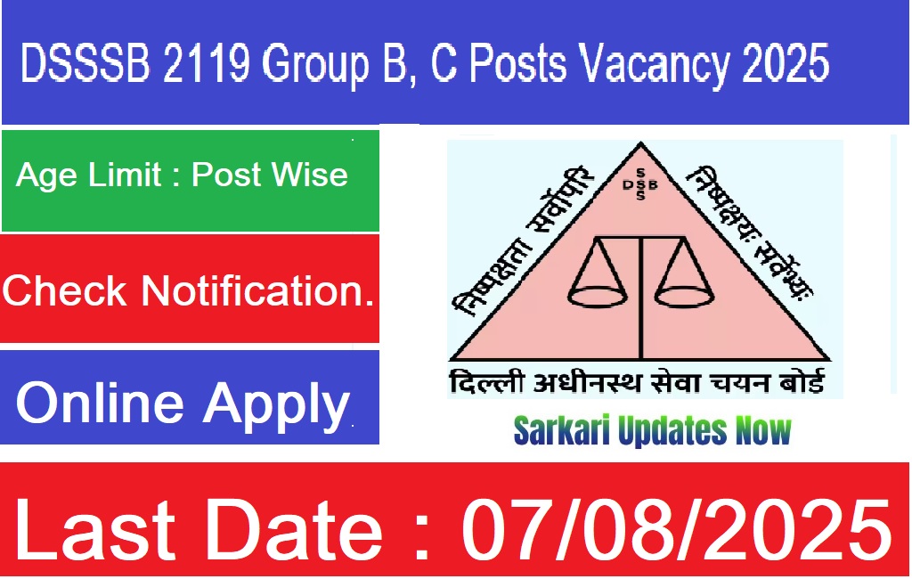 | Delhi Subordinate Services Selection Board (DSSSB) Various Group B, C Posts Recruitment 2025 Advt No. : 01/2025 Short Details of Notification | |||