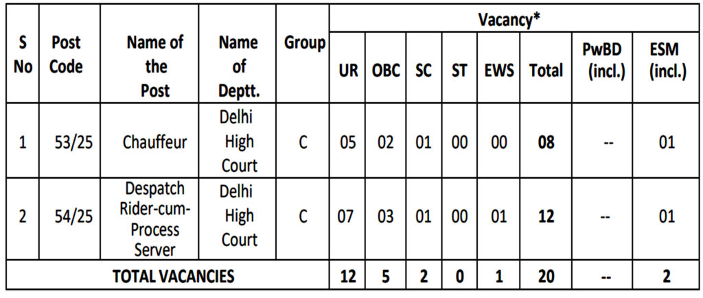| Delhi Subordinate Services Selection Board (DSSSB) Chauffeur (Driver), Process Server Recruitment 2025 Advt No. : 04/2025 Short Details of Notification |