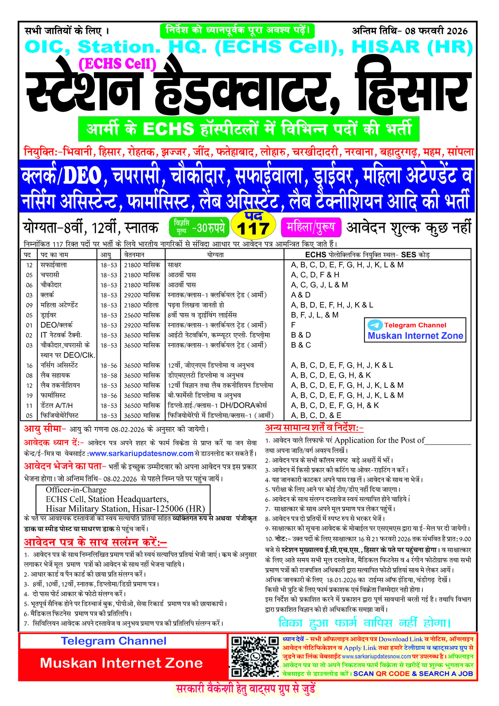 | ECHS Hisar Recruitment 2026 Short Information |