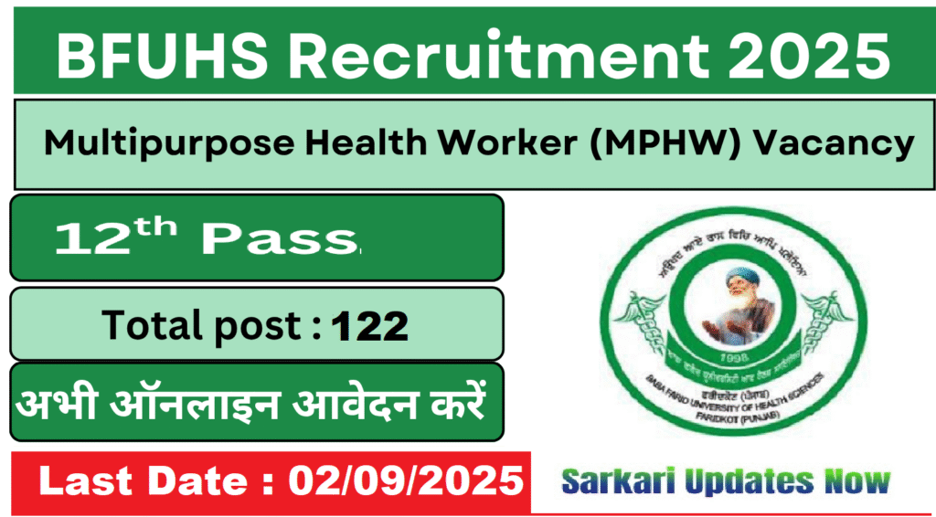 | Baba Farid University of Health Sciences, Faridkot (PB) Faridkot BFUHS MPHW (Female) Recruitment 2025 Advt No. : BFU-25/21 Short Details Of Notification |