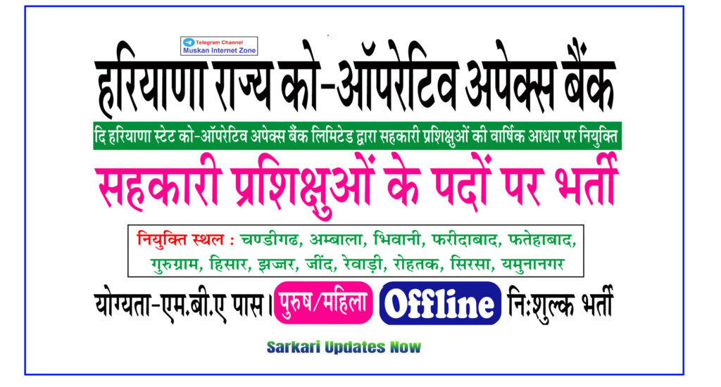 Introduction: With the aim to ensure that benefits of initiatives initiated by Ministry of Cooperation, Government of India reach the grass root level, strengthen cooperative based economic model and ensure necessary capacity building to the cooperatives, it has been decided that The Haryana State Cooperative Bank Ltd., Chandigarh will engage 13 Cooperative Interns (One for Harco Bank, Chandigarh and one each at District Central Cooperative Banks at Ambala, Bhiwani, Faridabad, Fatehabad, Gurgaon, Hisar, Jhajjar, Jind, Rewari, Rohtak, Sirsa and Yamunanagar for ONE year only. TheDetail guidelines of the Scheme are as under: