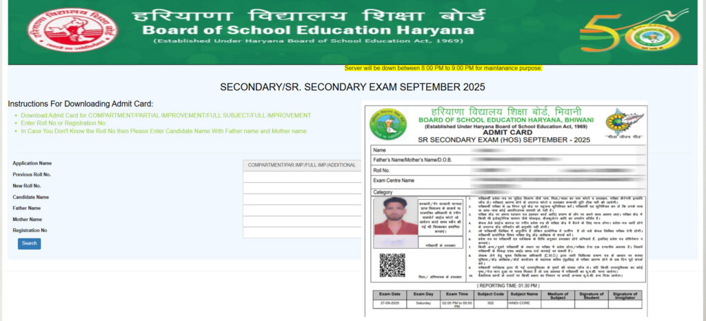 HBSE Re-Appear Exam 2025 Short Details