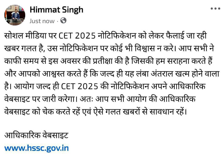 | Tweet by HSSC Chairman | Click Here | |