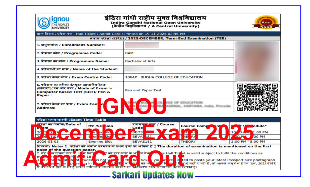 IGNOU Exam Form December 2025 : Indra Gandhi National Open University (IGNOU) Online Form Started For IGNOU TEE December 2025. Last Date, Exam Fees, Exam Form, Practical Fees, Project Fees Payment Mode and Other All Information Related To IGNOU TEE December 2025 will be Available Here. Read the Full Information of IGNOU Exam Form December 2025 Before Submit the Exam Form & Fees.