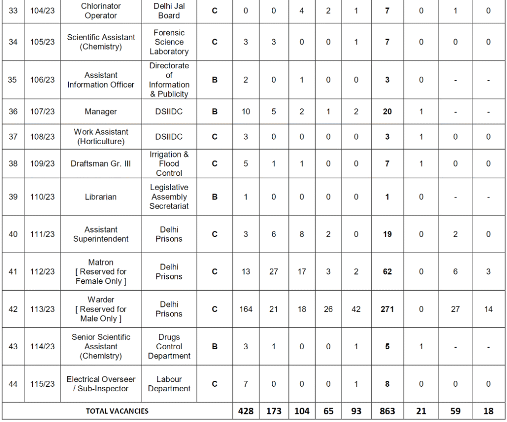 | DelhiĀ Subordinate Services Selection Board (DSSSB) DSSSB Various Group B, C Posts Recruitment 2023 Advt No. : 03/2023 Short Details Of Notification |