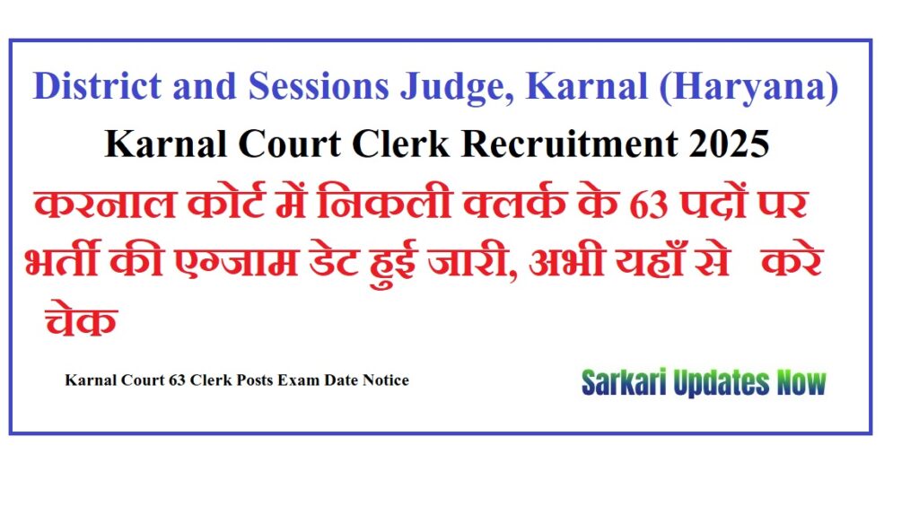 | District and Sessions Judge, Karnal (HR) Karnal Court Clerk Recruitment 2025 Short Details Of Advt Notification |
