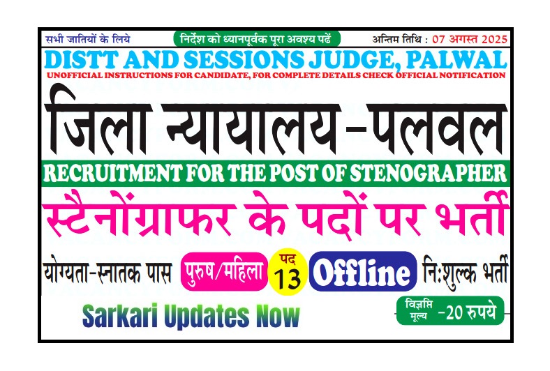 | District and Sessions Judge, Palwal (HR) Palwal Court Stenographer Recruitment 2025 Short Details Of Advertisement Notification |