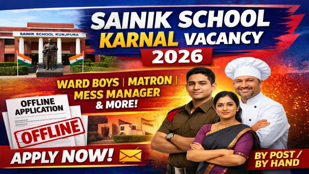 Sainik School Karnal Vacancy 2026 : Sainik School Karnal issue the Sainik School Karnal Vacancy Offline Application form for Ward Boys, Matron, Mess Manager and other posts. Interested Candidate can apply through Sending/ Submitting their application form via By Post or By Hand. All details related to Sainik School Karnal Recruitment 2026 are given below in this post.